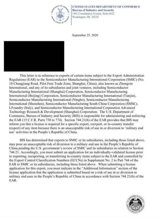 路透社当时还援引了美国商务部发出的一封信件,遭到美国政府出口限制的包括中芯国际在上海、北京、天津、深圳、宁波等地乃至意大利的分公司和合资公司。任何受该出口限制令影响的供应商若想继续给中芯国际供货,就得向美国政府申请出口许可证。