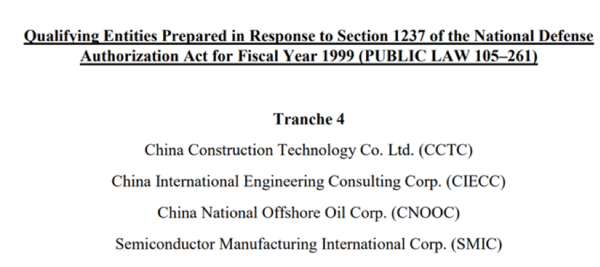 路透社消息,特朗普政府将中芯国际和中海油列入了「军工企业」制裁名单。