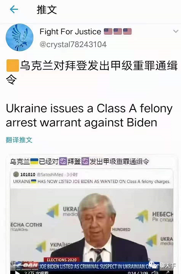 新闻网站OANN今天报导,乌克兰一家法院现已公布,因为在2016年向乌克兰政府施压,要求撤下总检察长维克多·肖金(Viktor Shokin),乔·拜登被列为一宗刑事案被告,并因被指控犯有A级重罪(Class A felony charge)而被通缉。