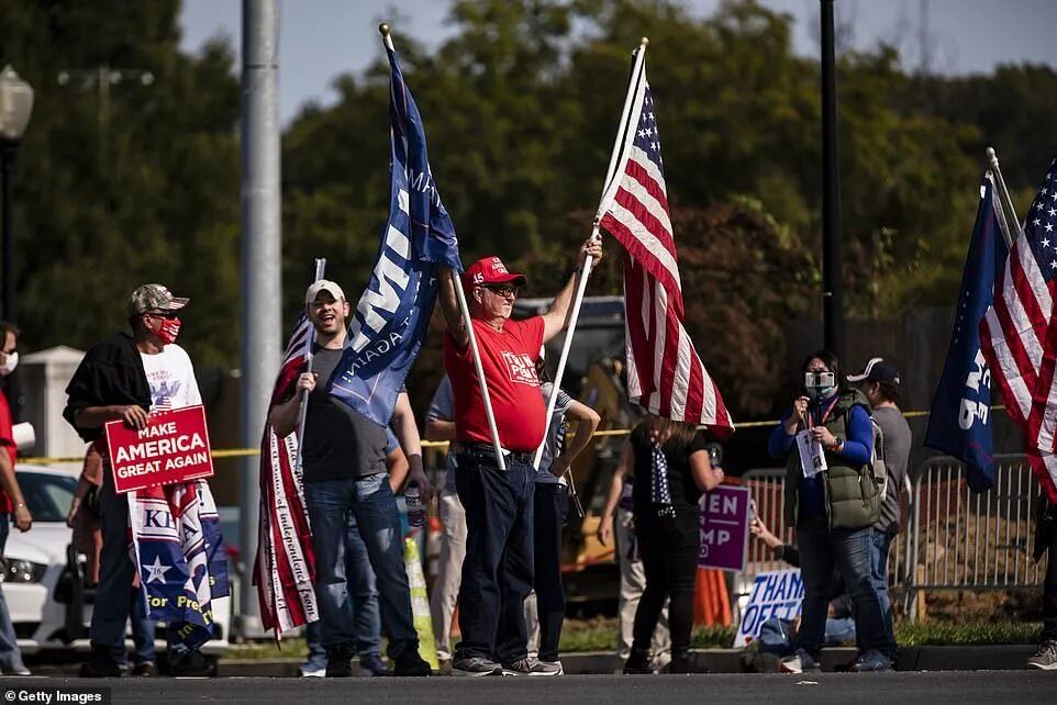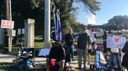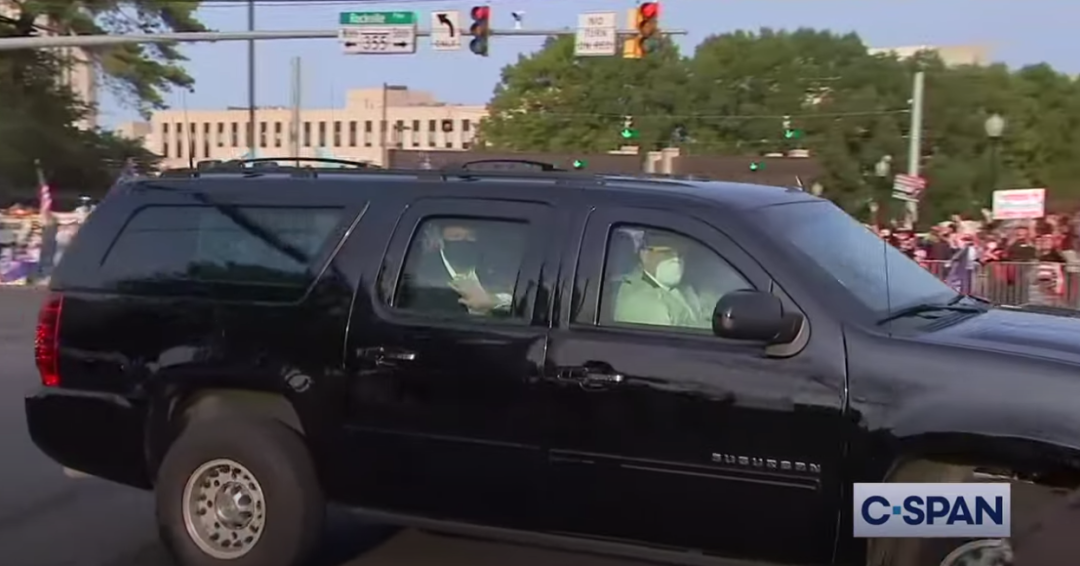 原本坚定在医院外守护总统的支持者们,看到川普为了他们,拖着病体,离开医院,和他们打招呼,只为给他们一个“惊喜”的会面。