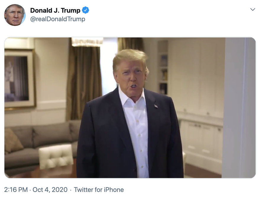 在离开医院之前,川普专门拍摄了一段短片,发布在推特上,他称这是一个“surprise visit”。