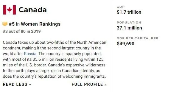 女性权益:加拿大全球第五