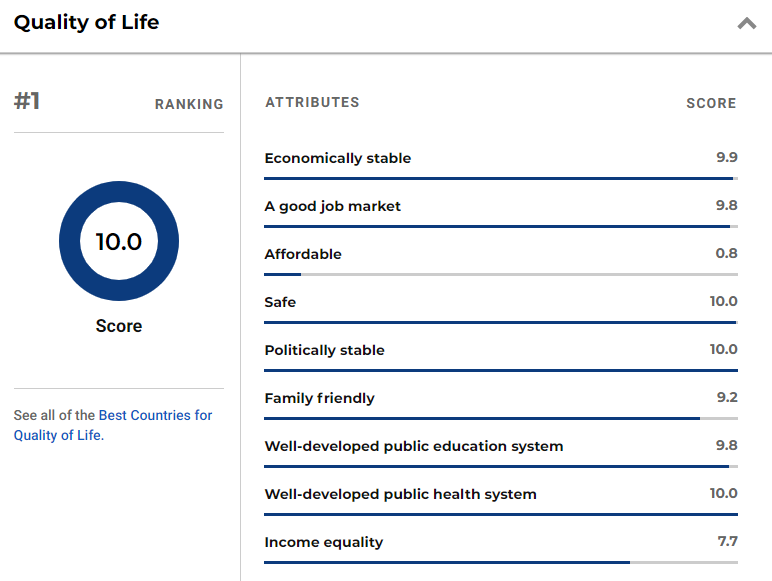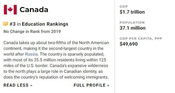 特别值得一提的是,加拿大的生活质量排名已经连续三年排第一,包括2018年、2019年和2020年。截图来源:www.usnews.com