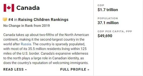 说到孩子,我们不由的引出了下个奖项,育儿。人权自由度:加拿大全球第三
