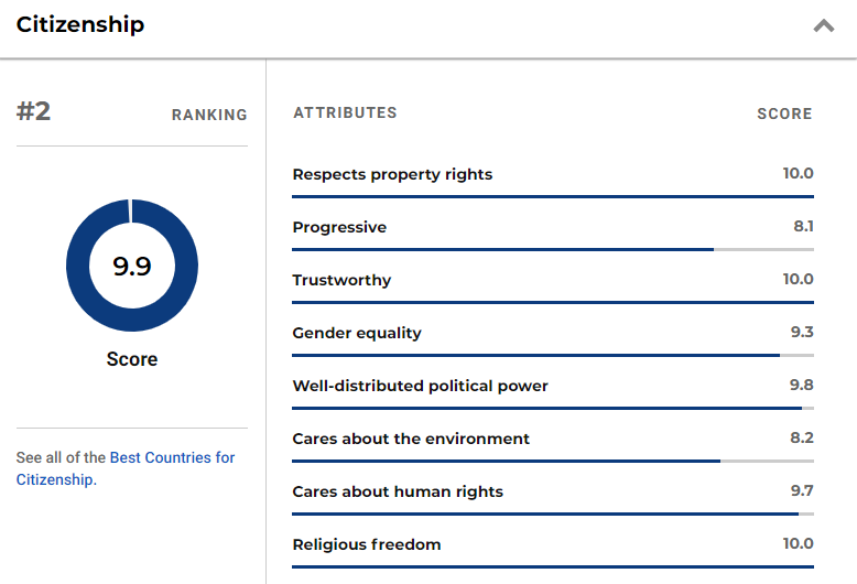 此次评比中以10分为满分,加拿大综合得分高达9.9分。