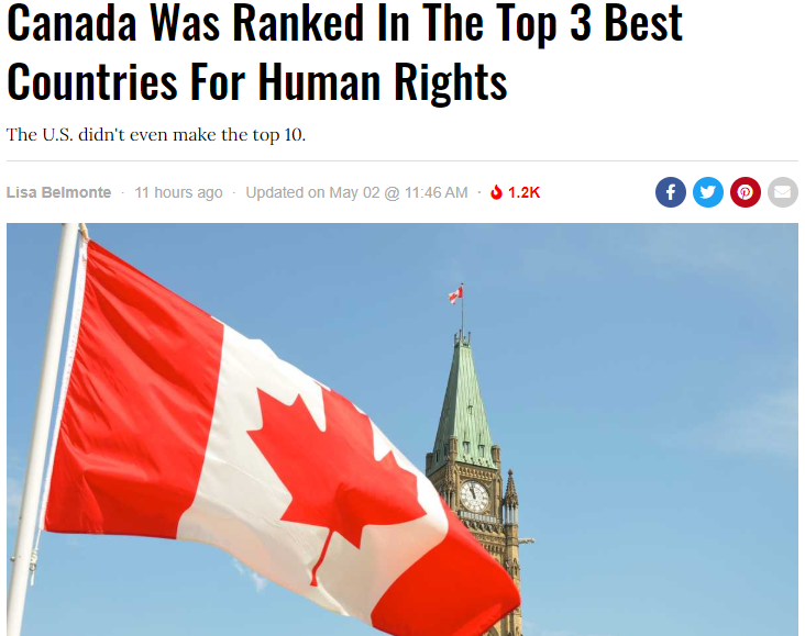 人权:加拿大全球第三