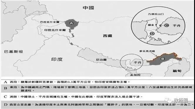中印边境问题示意图