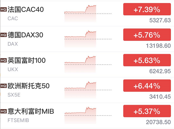 当消息出来的时候,欧洲股市盘中瞬间拉升!