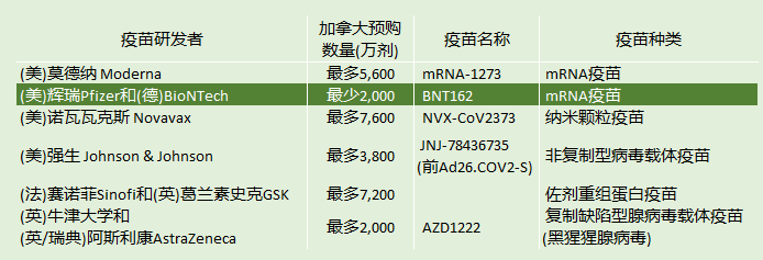 加拿大政府预购疫苗