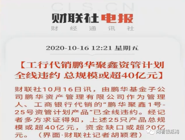 工行理财产品爆雷前不久工商银行销售的年化率为4%的理财产品爆雷了。原因是工行将这个理财产品买的债券爆雷了。