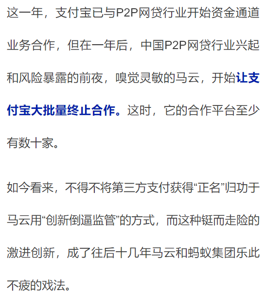 蚂蚁巨兽的成长之路,也是在这种思路体系下行动,它试探监管,在创新市场与监管博弈。