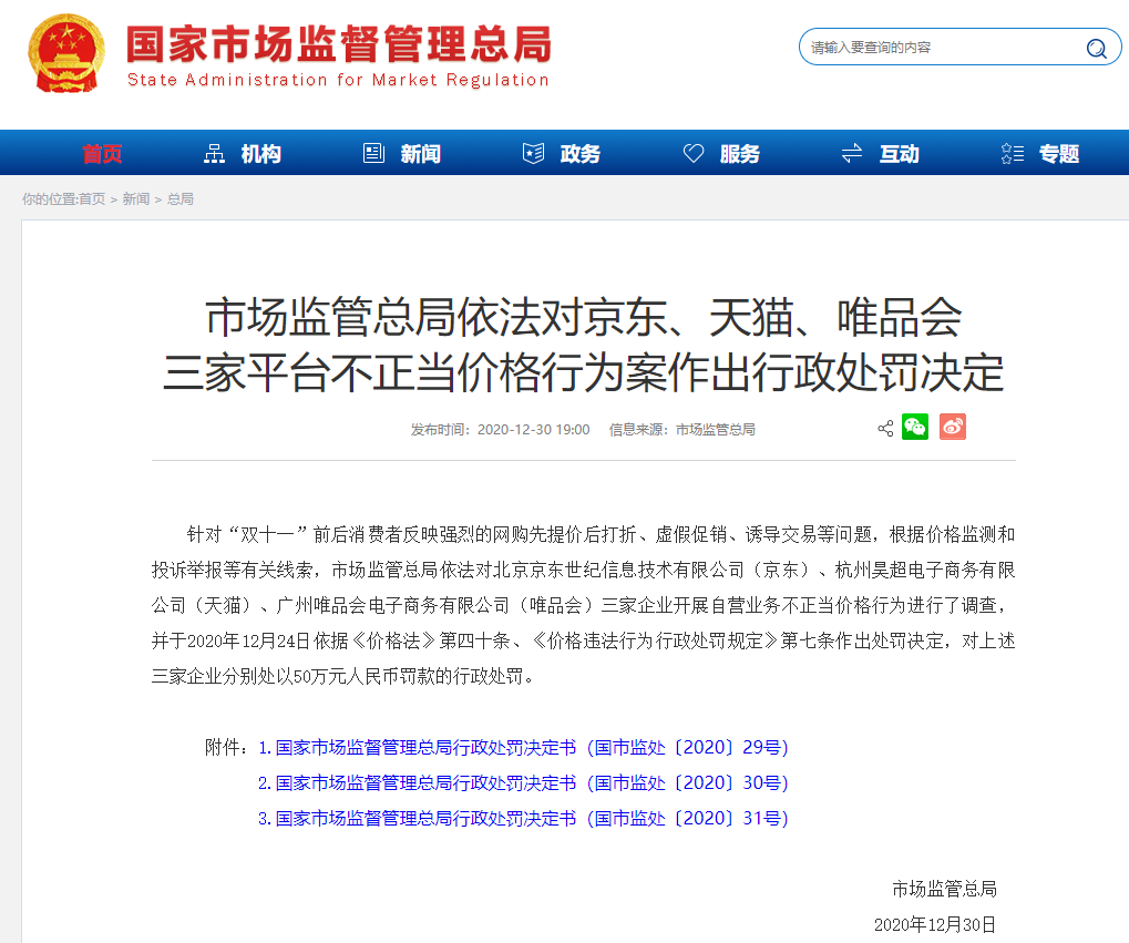 其中一起受处罚的,还有京东和唯品会。
