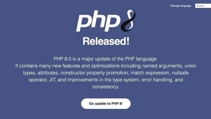 PHP 8.0 引入了可选的 JIT 编译器,将现有的 JSON 支持集成到核心(不再是可选),并增加了对属性、联合类型,静态返回类型和其他附加语言的支持。